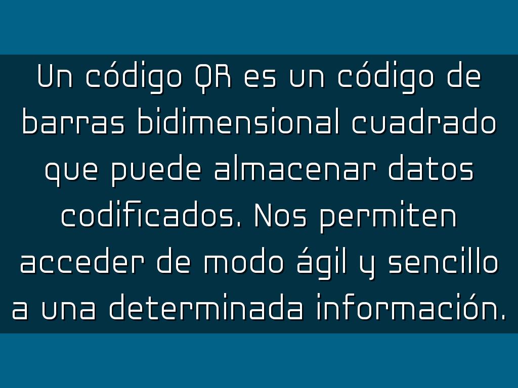 Un código QR es un código de barras bidimensional cuadrado que puede almacenar datos codificados. Nos permiten acceder de modo ágil y sencillo a una determinada información.