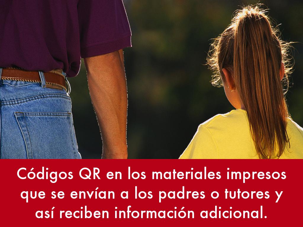 Códigos QR en los materiales impresos que se envían a los padres o tutores y así reciben información adicional.