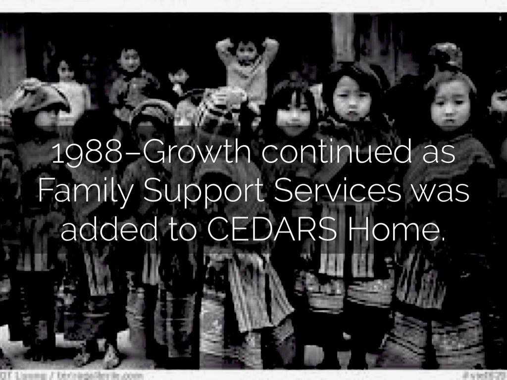 1988–Growth continued as Family Support Services was added to CEDARS Home.