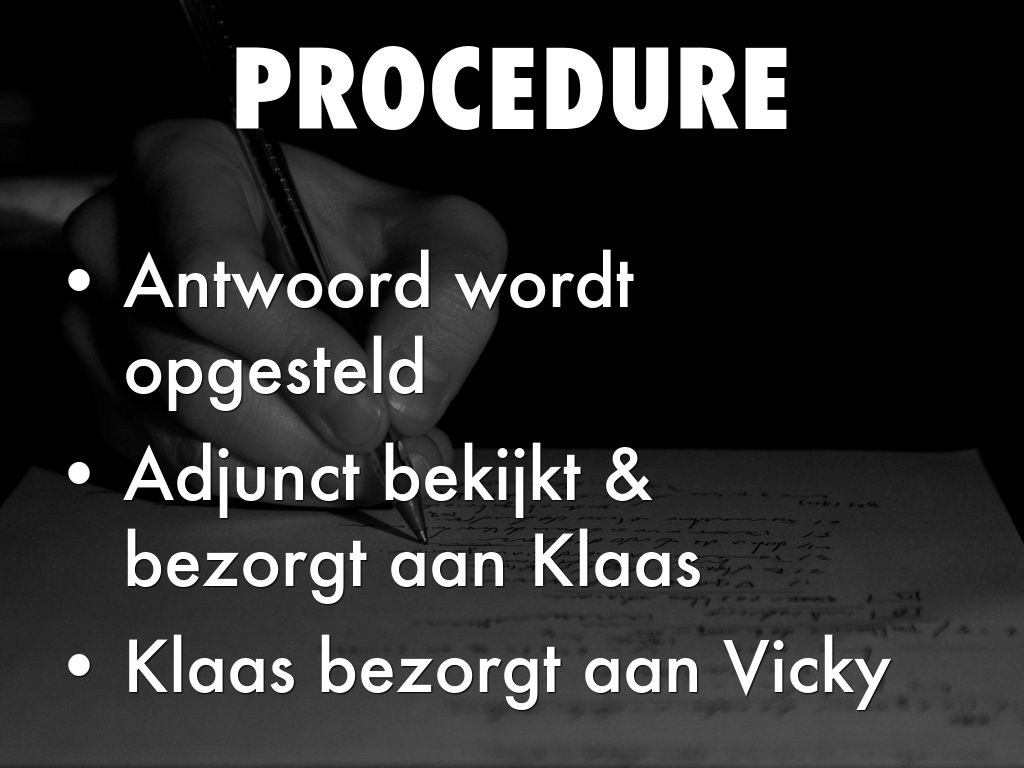 Adjunct bekijkt & bezorgt aan Klaas