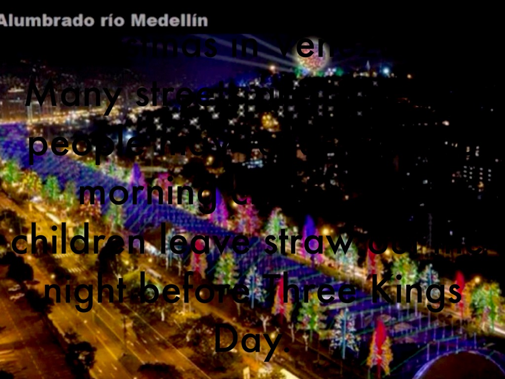Many streets are closed so people may roller skate to morning church. The children leave straw out the night before Three Kings Day.