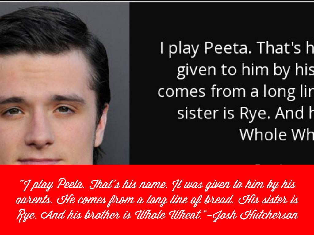 "I play Peeta. That's his name. It was given to him by his parents. He comes from a long line of bread. His sister is Rye. And his brother is Whole Wheat."-Josh Hutcherson