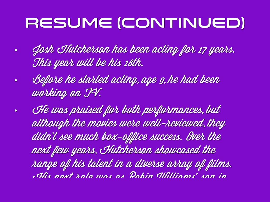 Josh Hutcherson has been acting for 17 years. This year will be his 18th.