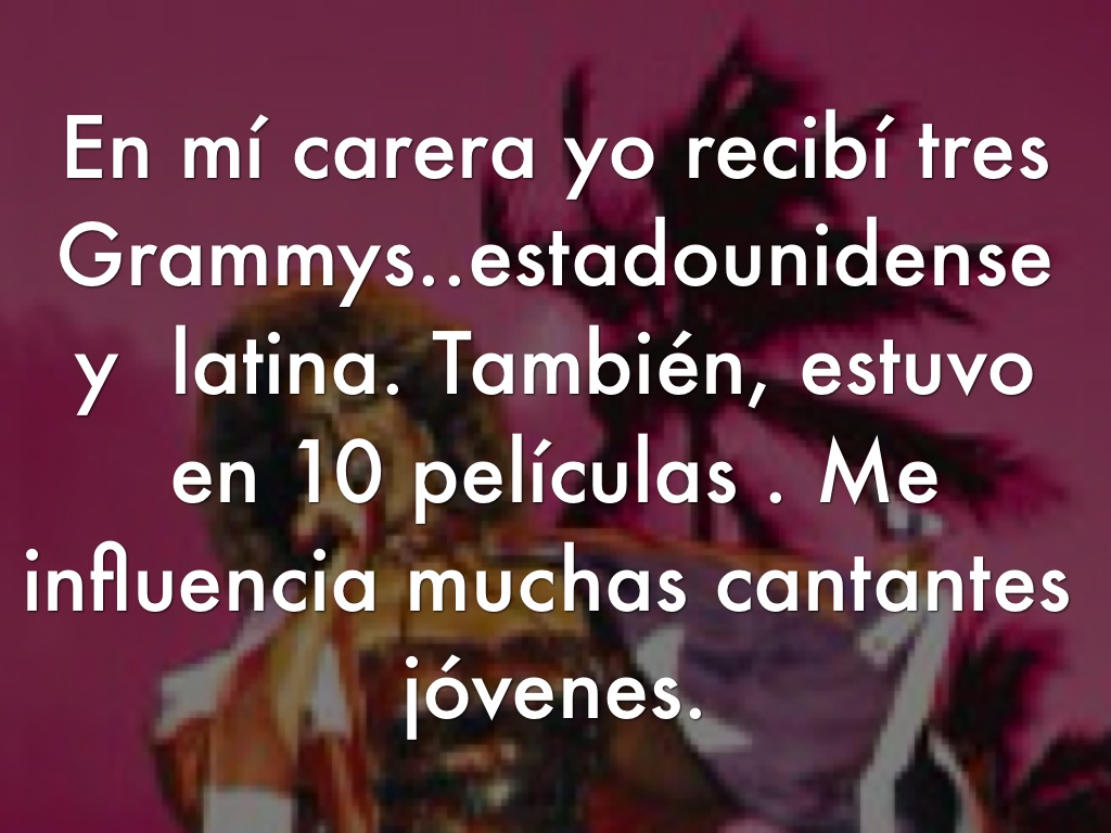 En mí carera yo recibí tres Grammys..estadounidense y latina. También, estuvo en 10 películas . Me influencia muchas cantantes jóvenes.