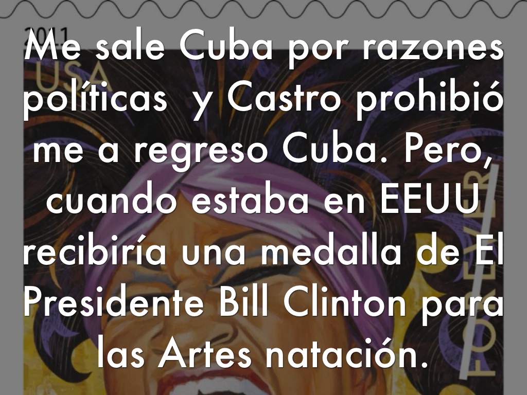 Me sale Cuba por razones políticas y Castro prohibió me a regreso Cuba. Pero, cuando estaba en EEUU recibiría una medalla de El Presidente Bill Clinton para las Artes natación.