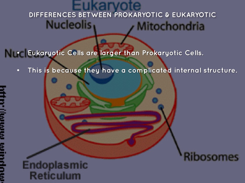Eukaryotic Cells are larger than Prokaryotic Cells.