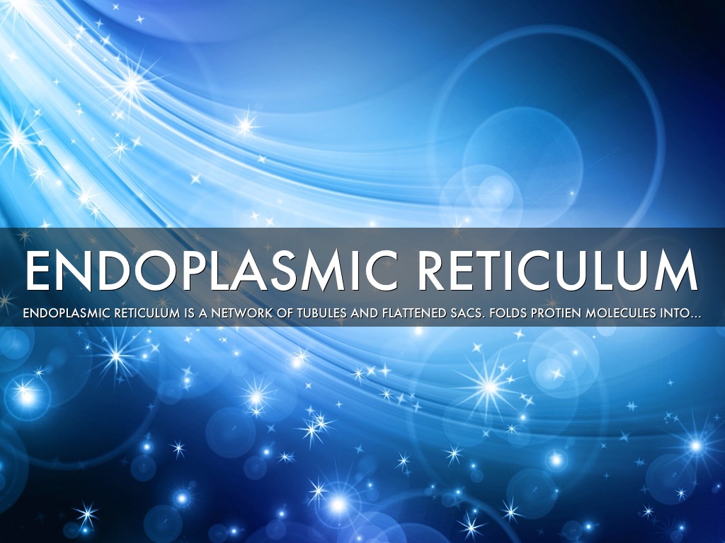 ENDOPLASMIC RETICULUM IS A NETWORK OF TUBULES AND FLATTENED SACS. FOLDS PROTIEN MOLECULES INTO THESE SACS AND ALSO THE TRANSPORT OF SYNTHESIZED PROTIENS. IT'S FORMED IN EUKARYOTES AND PROKARYOTES.