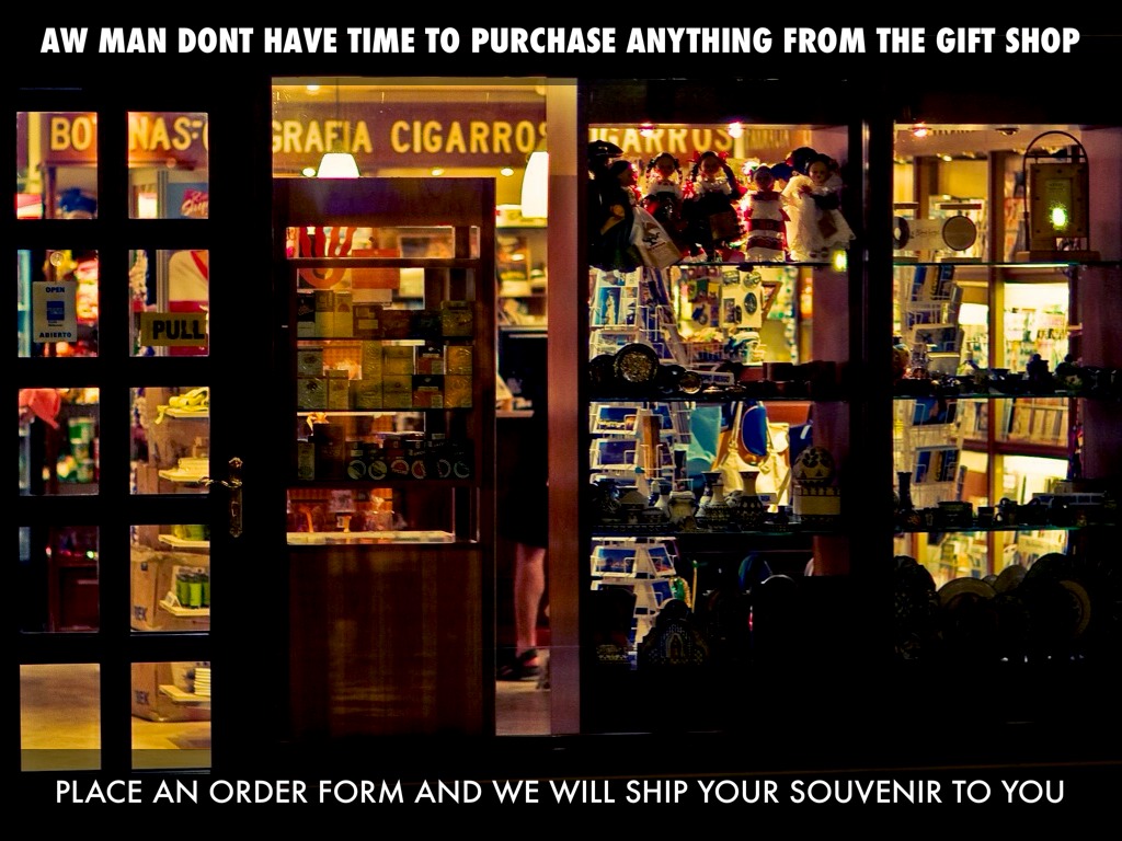AW MAN DONT HAVE TIME TO PURCHASE ANYTHING FROM THE GIFT SHOP