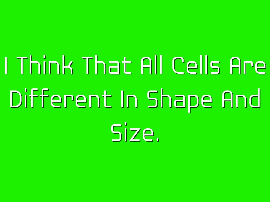 My Conclusion is that all cells are different in size and shape. How do I know? I tested my theory with many organisms and got various results. As you have seen, some cells are symmetrical and big, while others are small and unique in shape.