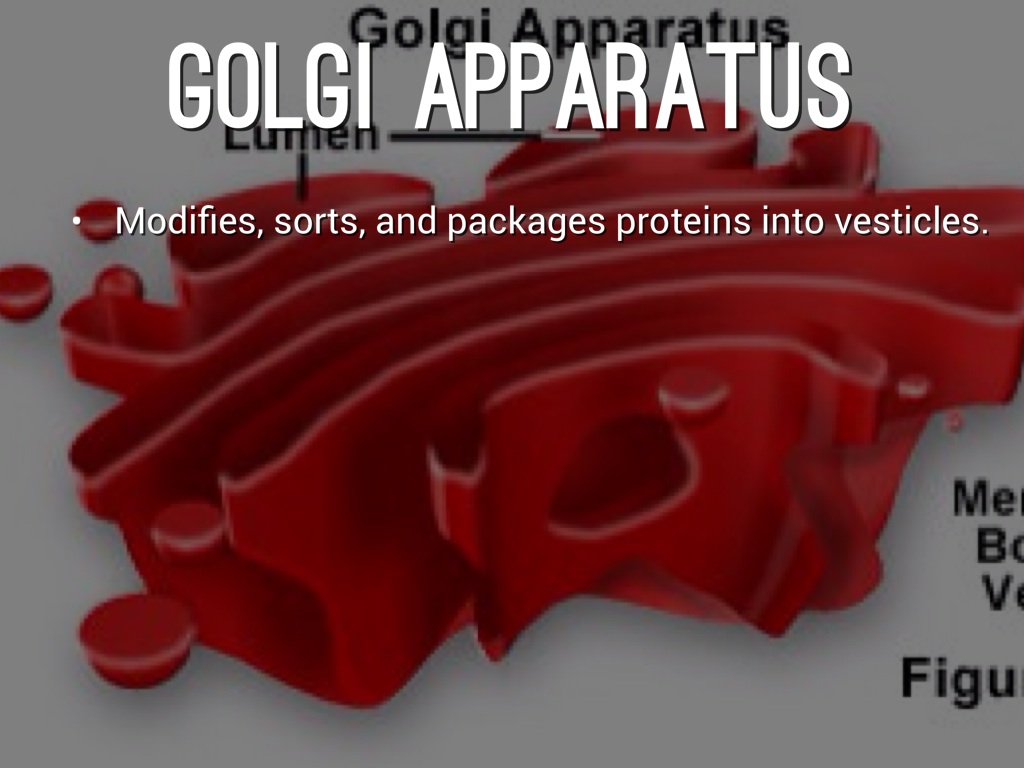 Modifies, sorts, and packages proteins into vesticles.
