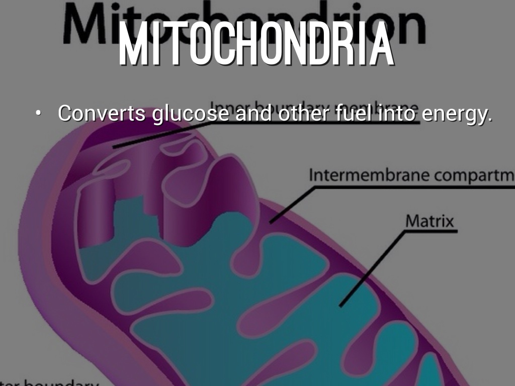 Converts glucose and other fuel into energy.