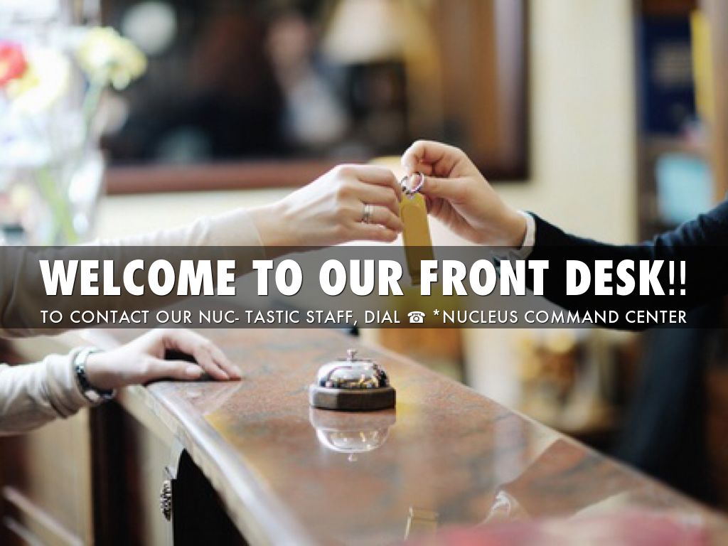 The front desk is like the nucleus because just like the nucleus it controls what's going on.
