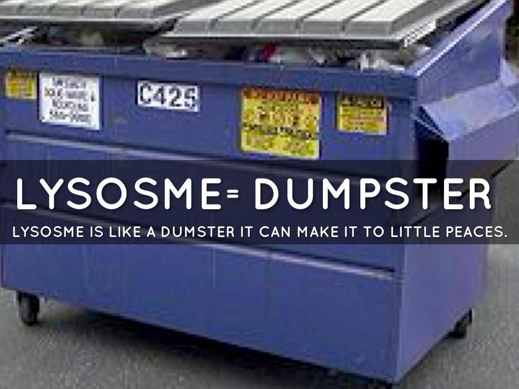 LYSOSME IS LIKE A DUMSTER IT CAN MAKE IT TO LITTLE PEACES.