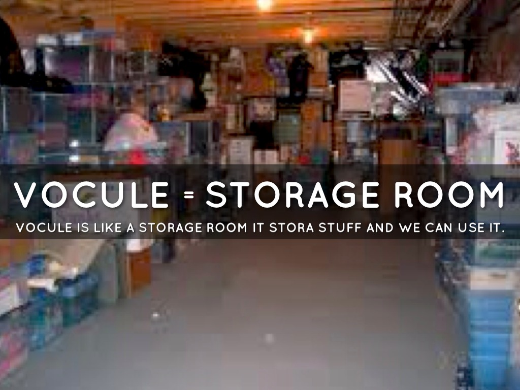 VOCULE IS LIKE A STORAGE ROOM IT STORA STUFF AND WE CAN USE IT.