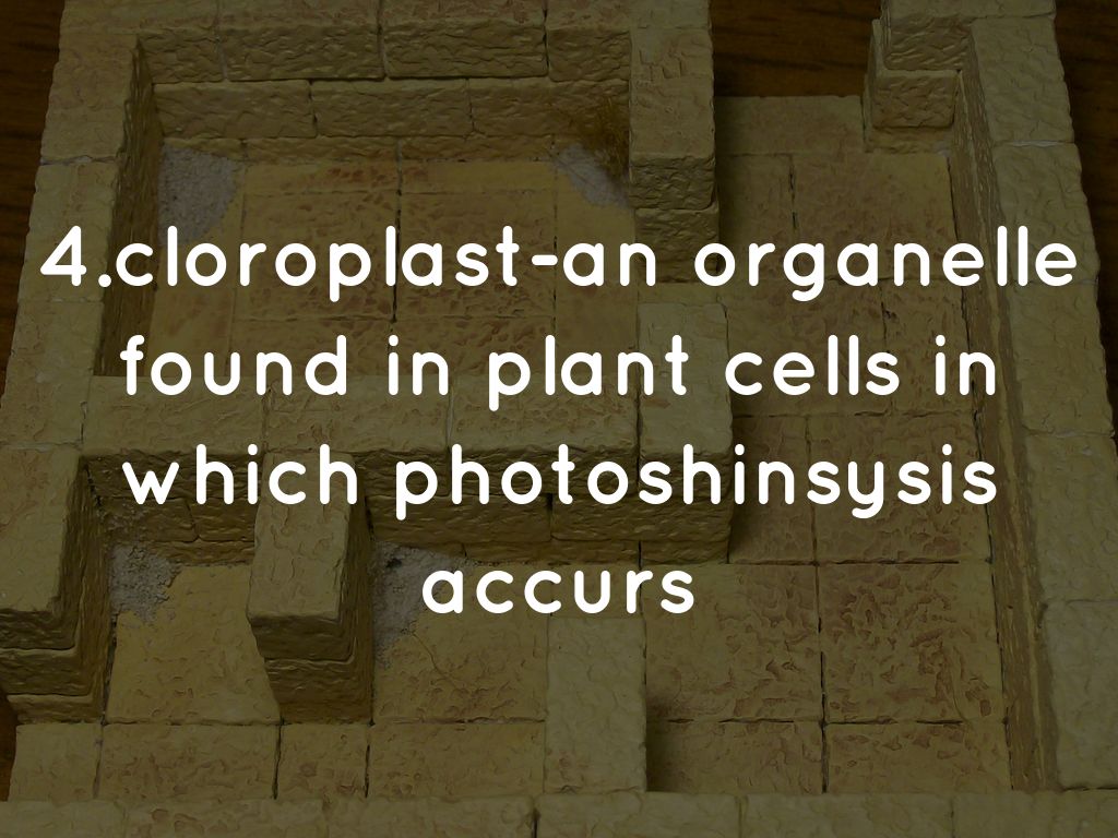 4.cloroplast-an organelle found in plant cells in which photoshinsysis accurs