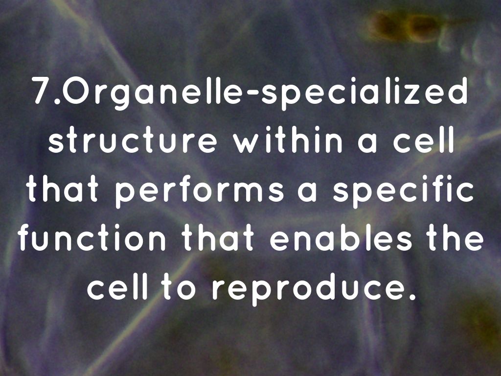 7.Organelle-specialized structure within a cell that performs a specific function that enables the cell to reproduce.
