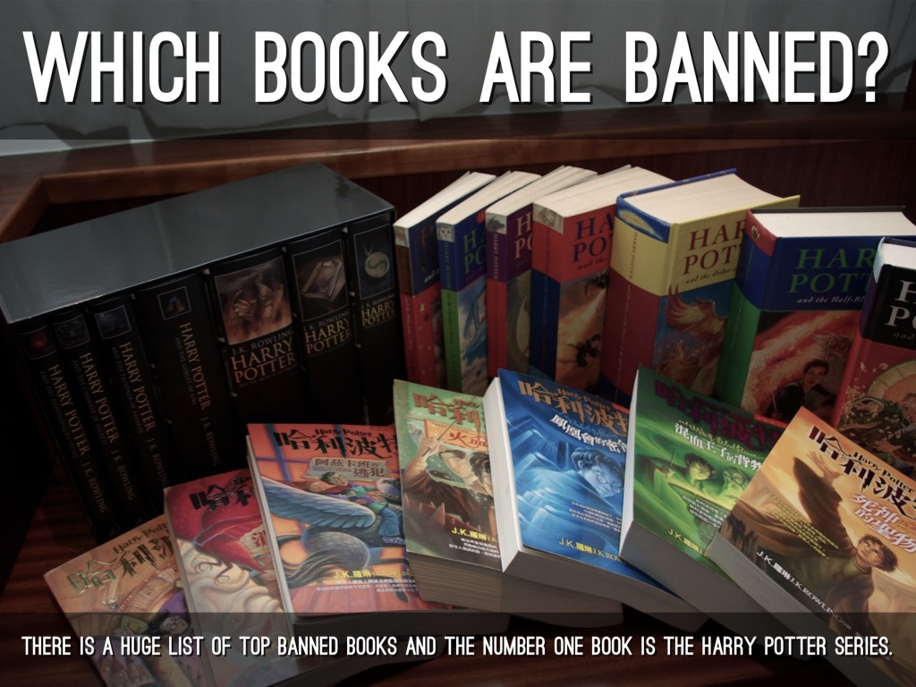 THERE IS A HUGE LIST OF TOP BANNED BOOKS AND THE NUMBER ONE BOOK IS THE HARRY POTTER SERIES.