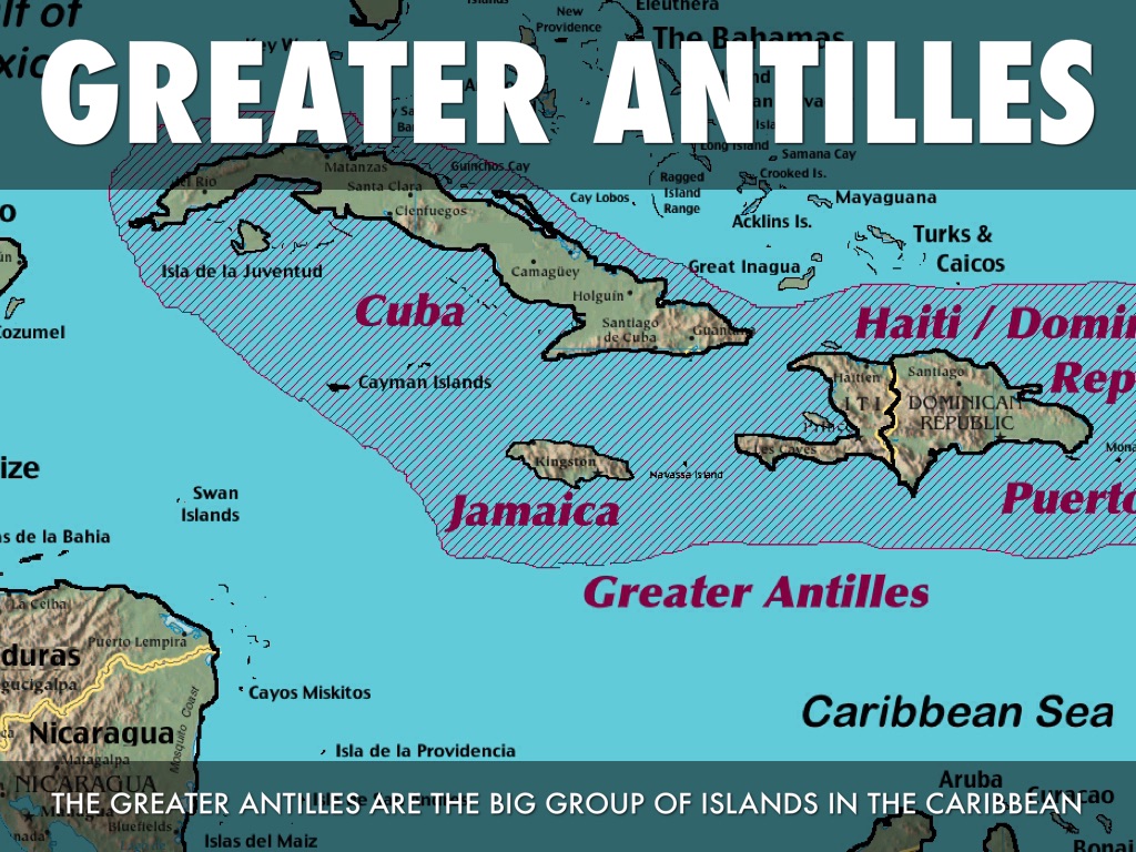 THE GREATER ANTILLES ARE THE BIG GROUP OF ISLANDS IN THE CARIBBEAN