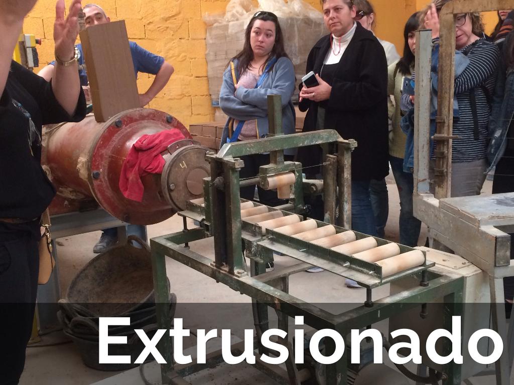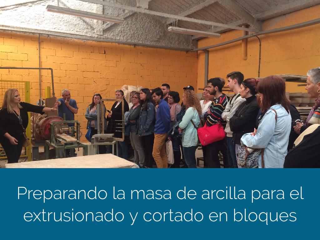 Preparando la masa de arcilla para el extrusionado y cortado en bloques
