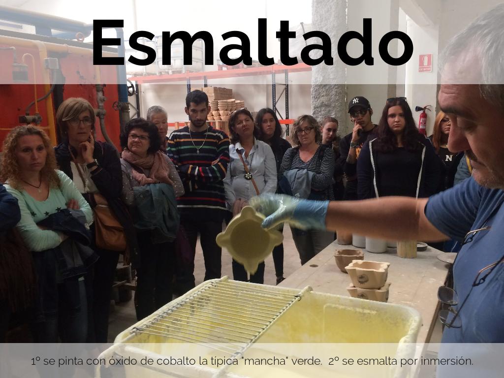 1º se pinta con óxido de cobalto la típica "mancha" verde.  2º se esmalta por inmersión.