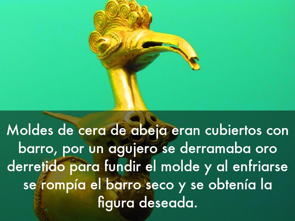 Moldes de cera de abeja eran cubiertos con barro, por un agujero se derramaba oro derretido para fundir el molde y al enfriarse se rompía el barro seco y se obtenía la figura deseada.