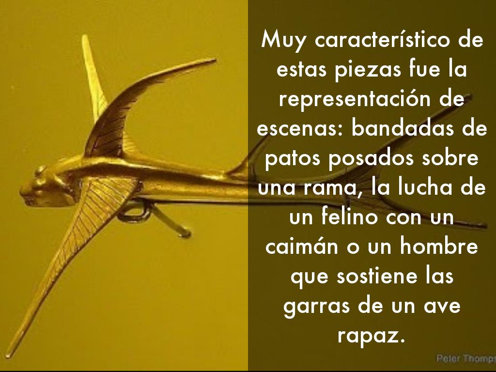 Muy característico de estas piezas fue la representación de escenas: bandadas de patos posados sobre una rama, la lucha de un felino con un caimán o un hombre que sostiene las garras de un ave rapaz.
