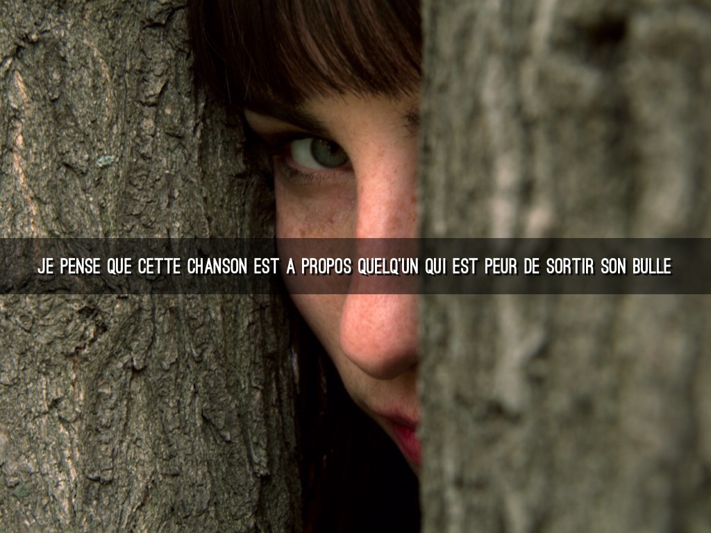 JE PENSE QUE CETTE CHANSON EST A PROPOS QUELQ'UN QUI EST PEUR DE SORTIR SON BULLE