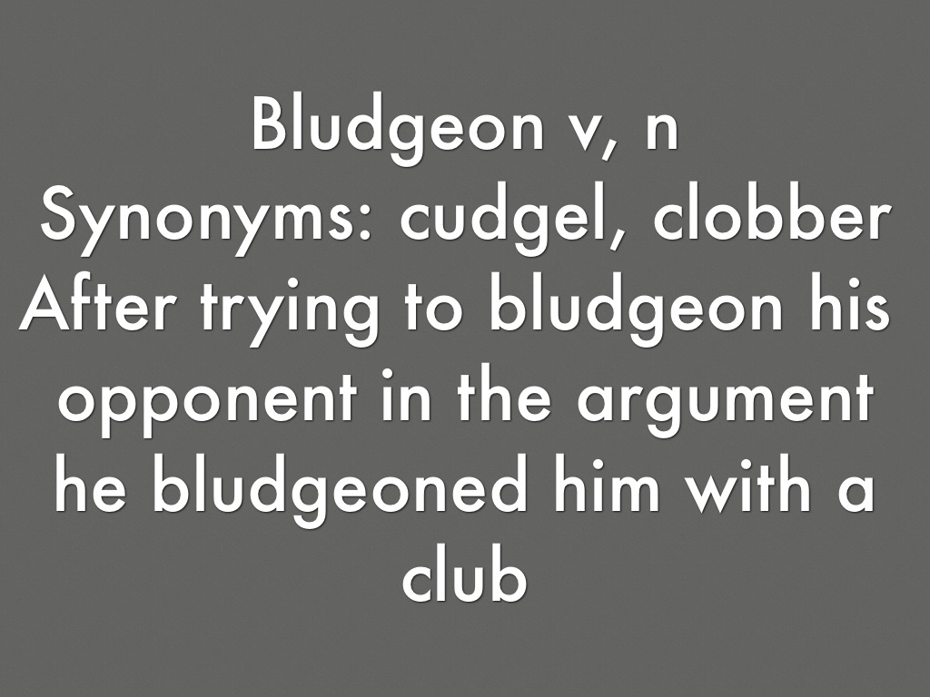 After trying to bludgeon his opponent in the argument he bludgeoned him with a club