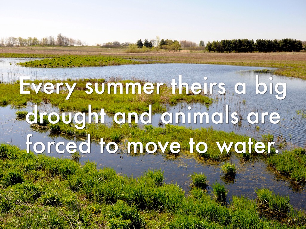 Every summer theirs a big drought and animals are forced to move to water.