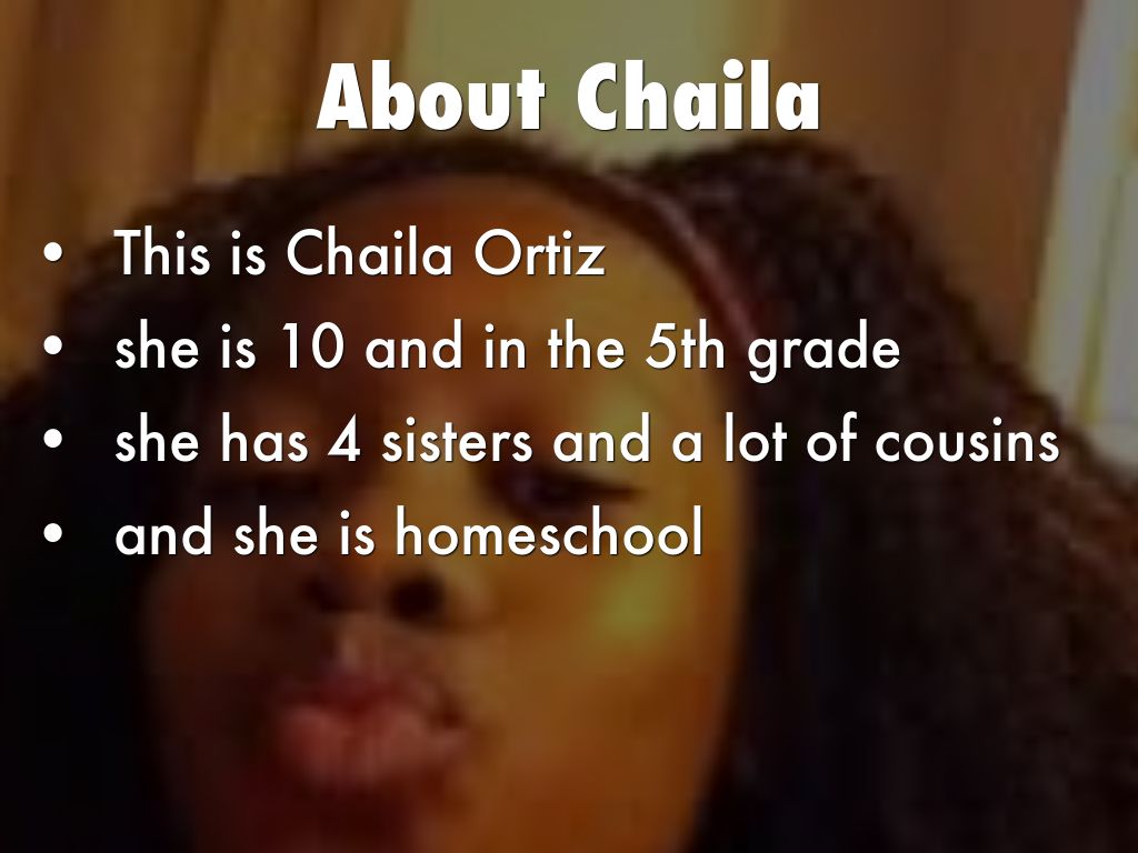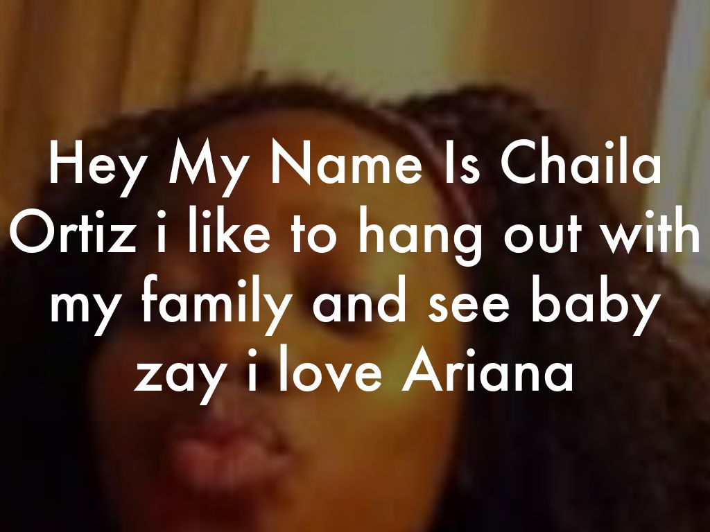 Hey My Name Is Chaila Ortiz i like to hang out with my family and see baby zay i love Ariana