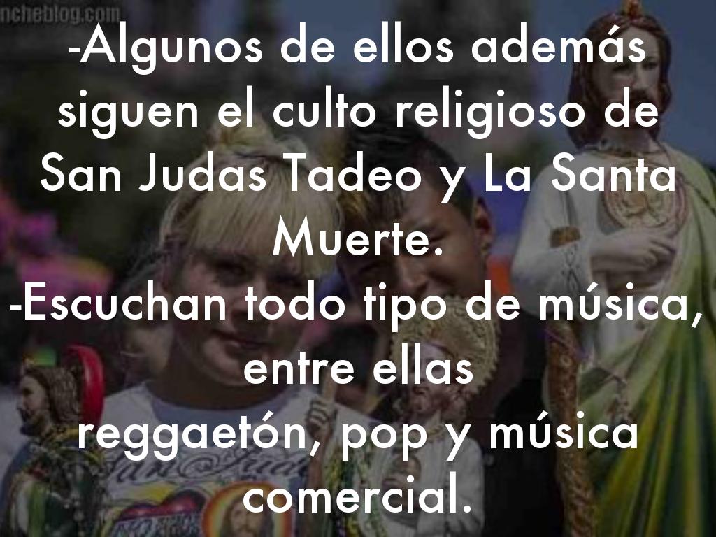 -Algunos de ellos además siguen el culto religioso de San Judas Tadeo y La Santa Muerte.