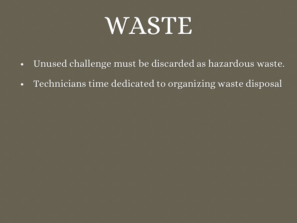 Unused challenge must be discarded as hazardous waste.