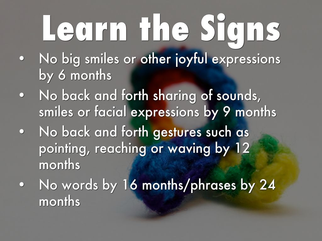 No back and forth sharing of sounds, smiles or facial expressions by 9 months