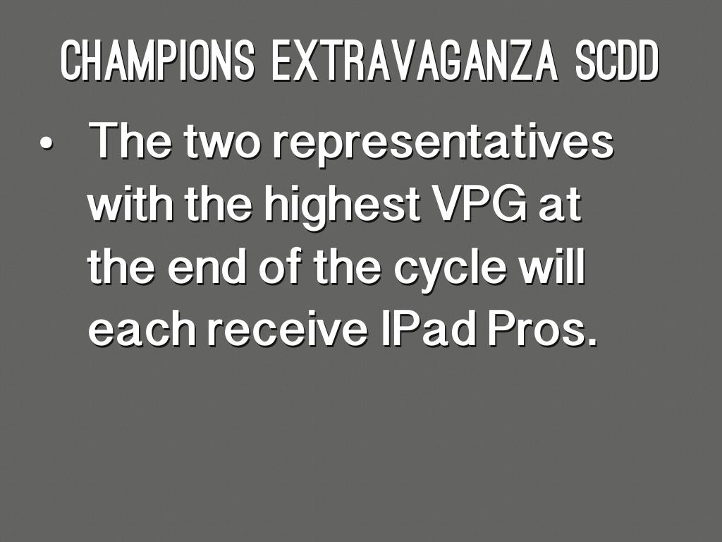 - The two representatives with the highest VPG at the end of the cycle will each receive IPad Pros.