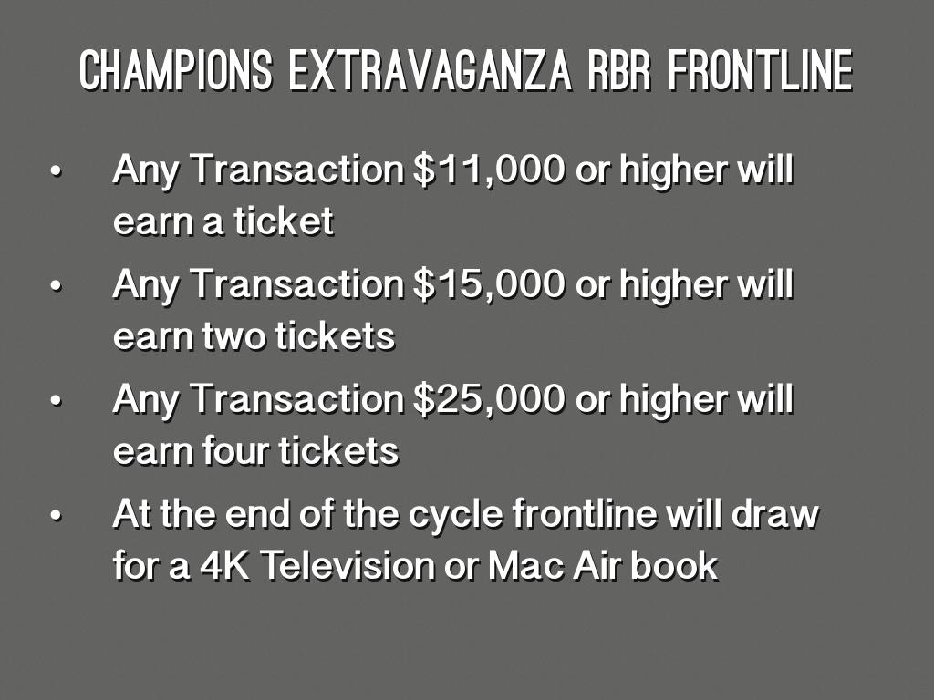 - Any Transaction $11,000 or higher will earn a ticket
