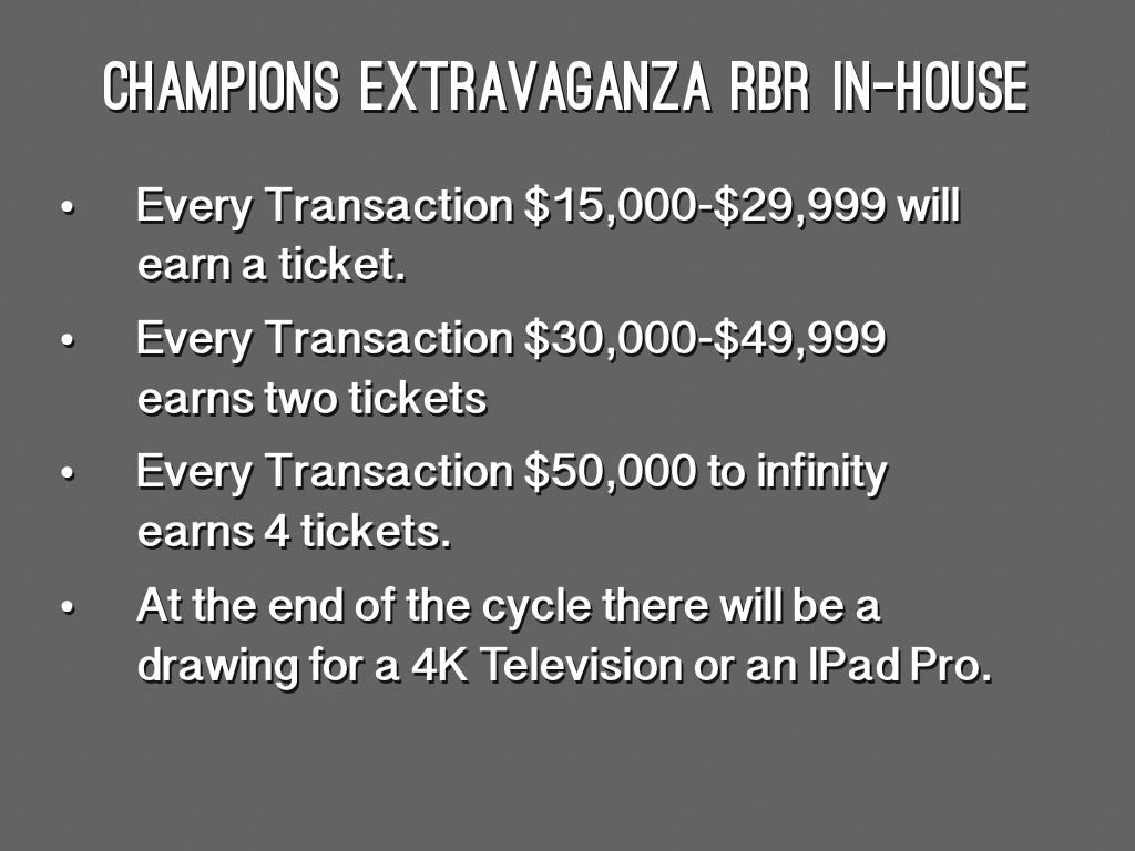 - Any Transaction $25,000 or higher will earn four tickets