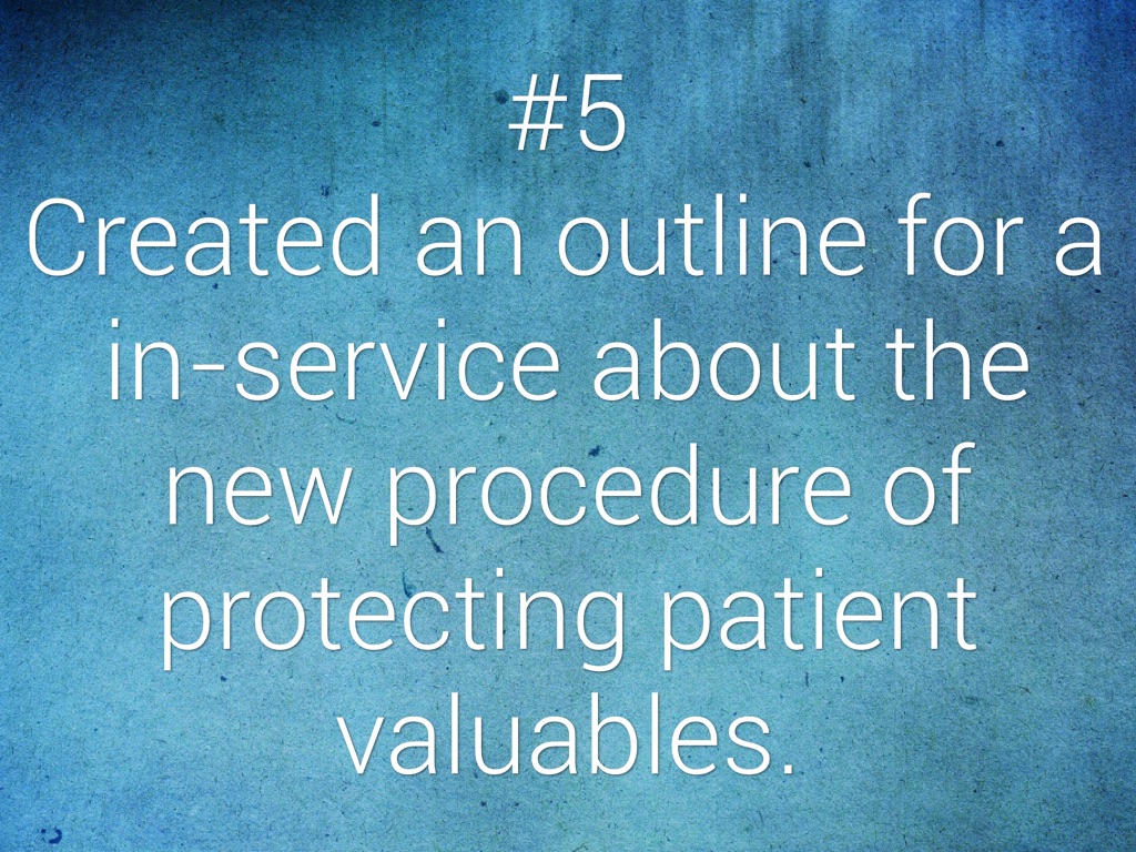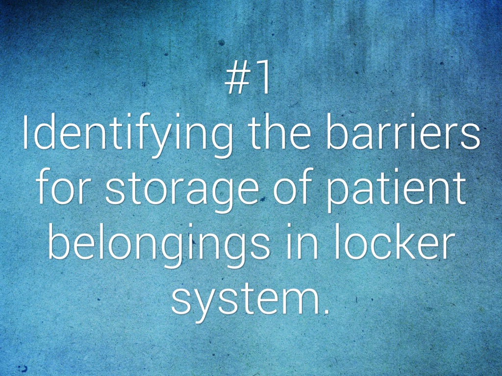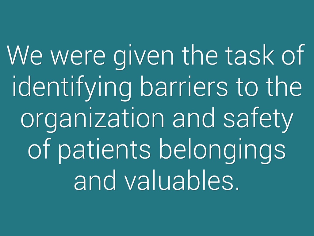 We were given the task of identifying barriers to the organization and safety of patients belongings and valuables.