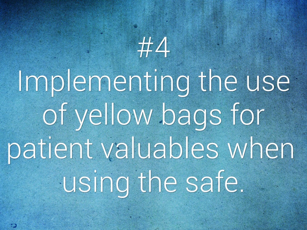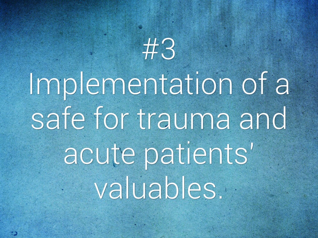 Implemented a safe for secure storage of trauma and acute patients' valuables.