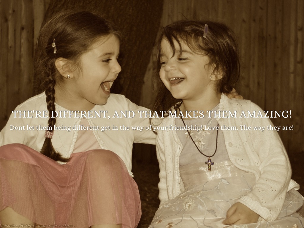 Dont let them being different get in the way of your friendship! Love them. The way they are!