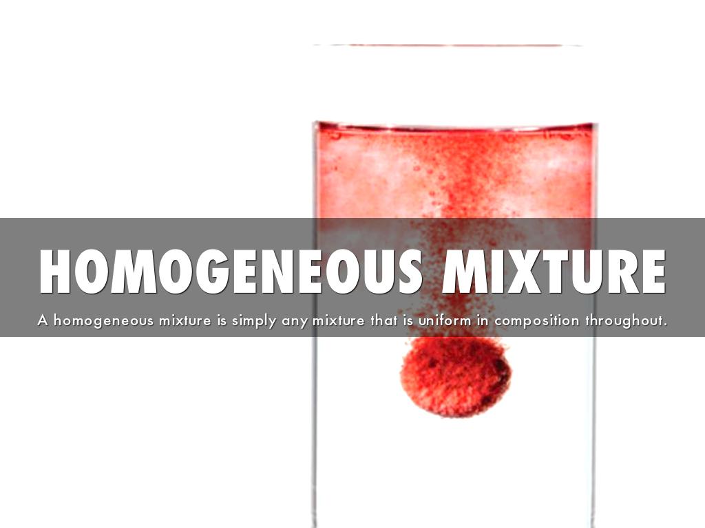 A homogeneous mixture is simply any mixture that is uniform in composition throughout.
