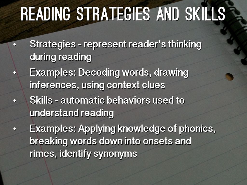 Skills - automatic behaviors used to understand reading