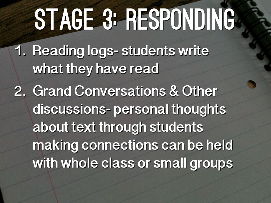 Grand Conversations & Other discussions- personal thoughts about text through students making connections can be held with whole class or small groups