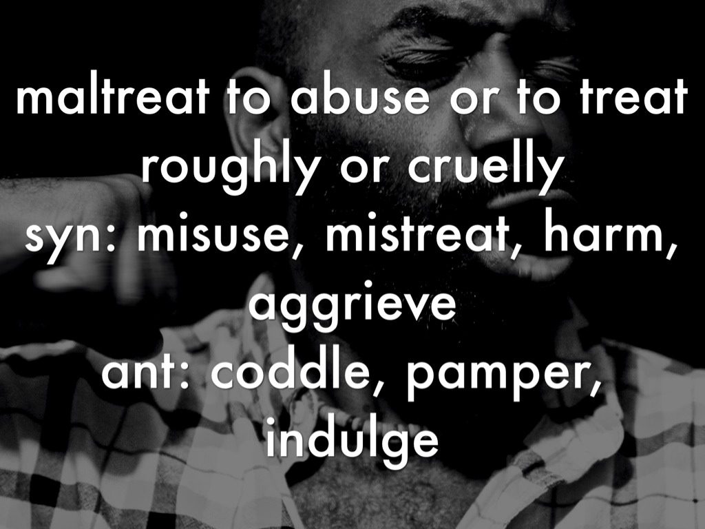 maltreat to abuse or to treat roughly or cruelly