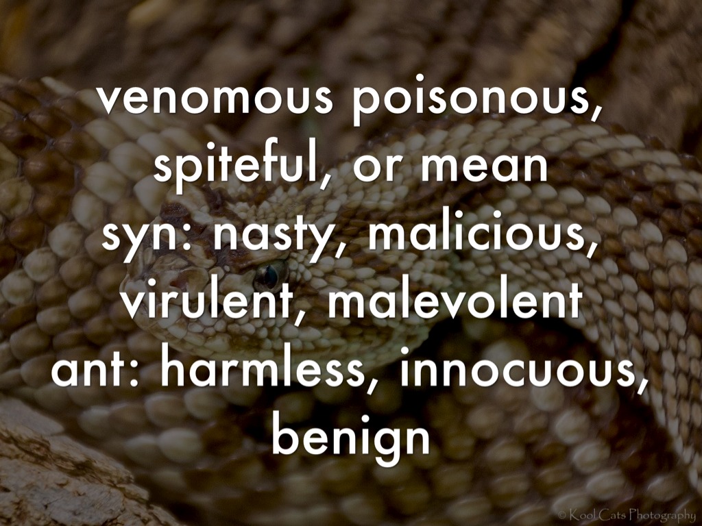 venomous poisonous, spiteful, or mean