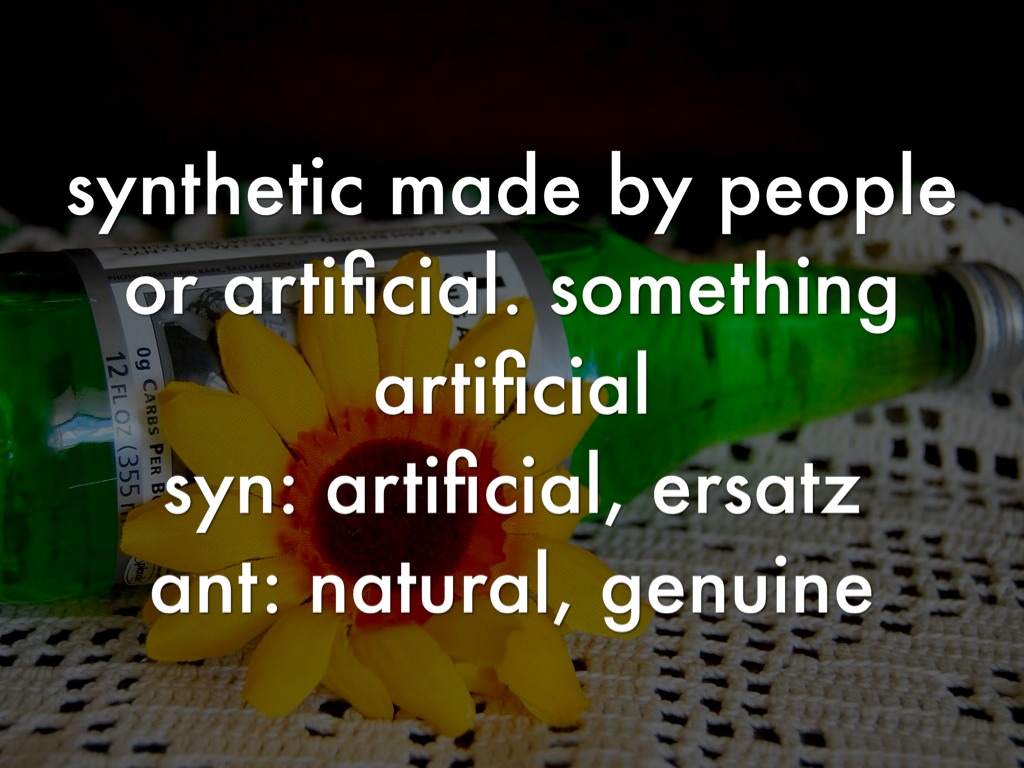synthetic made by people or artificial. something artificial