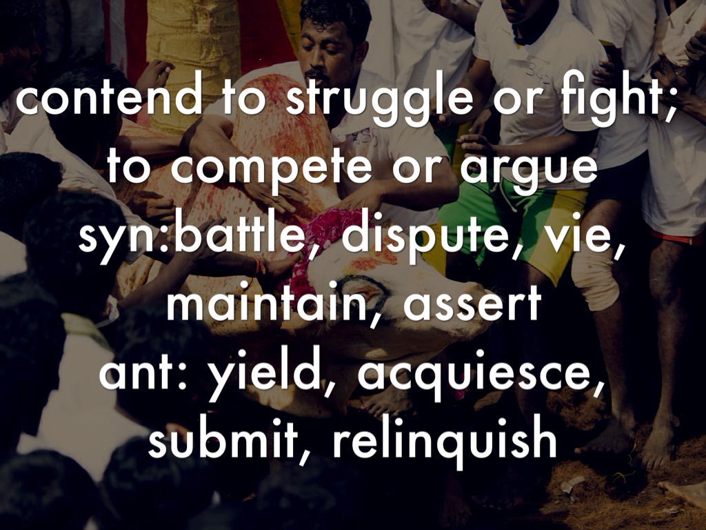 contend to struggle or fight; to compete or argue