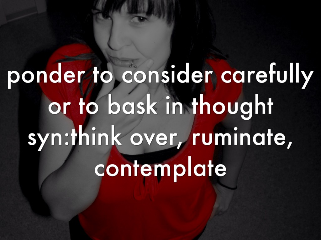 ponder to consider carefully or to bask in thought