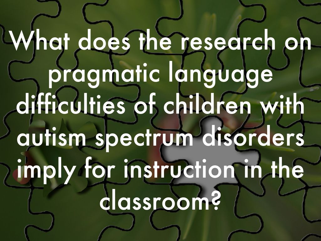What does the research on pragmatic language difficulties of children with autism spectrum disorders imply for instruction in the classroom?