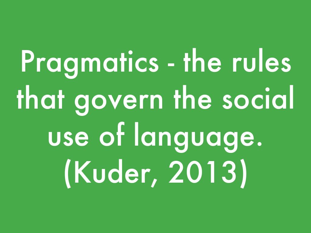 Pragmatics - the rules that govern the social use of language. (Kuder, 2013)