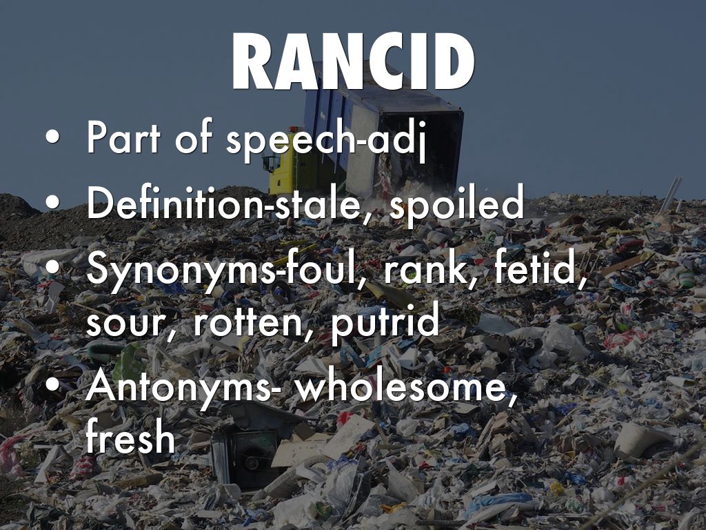 Synonyms-foul, rank, fetid, sour, rotten, putrid